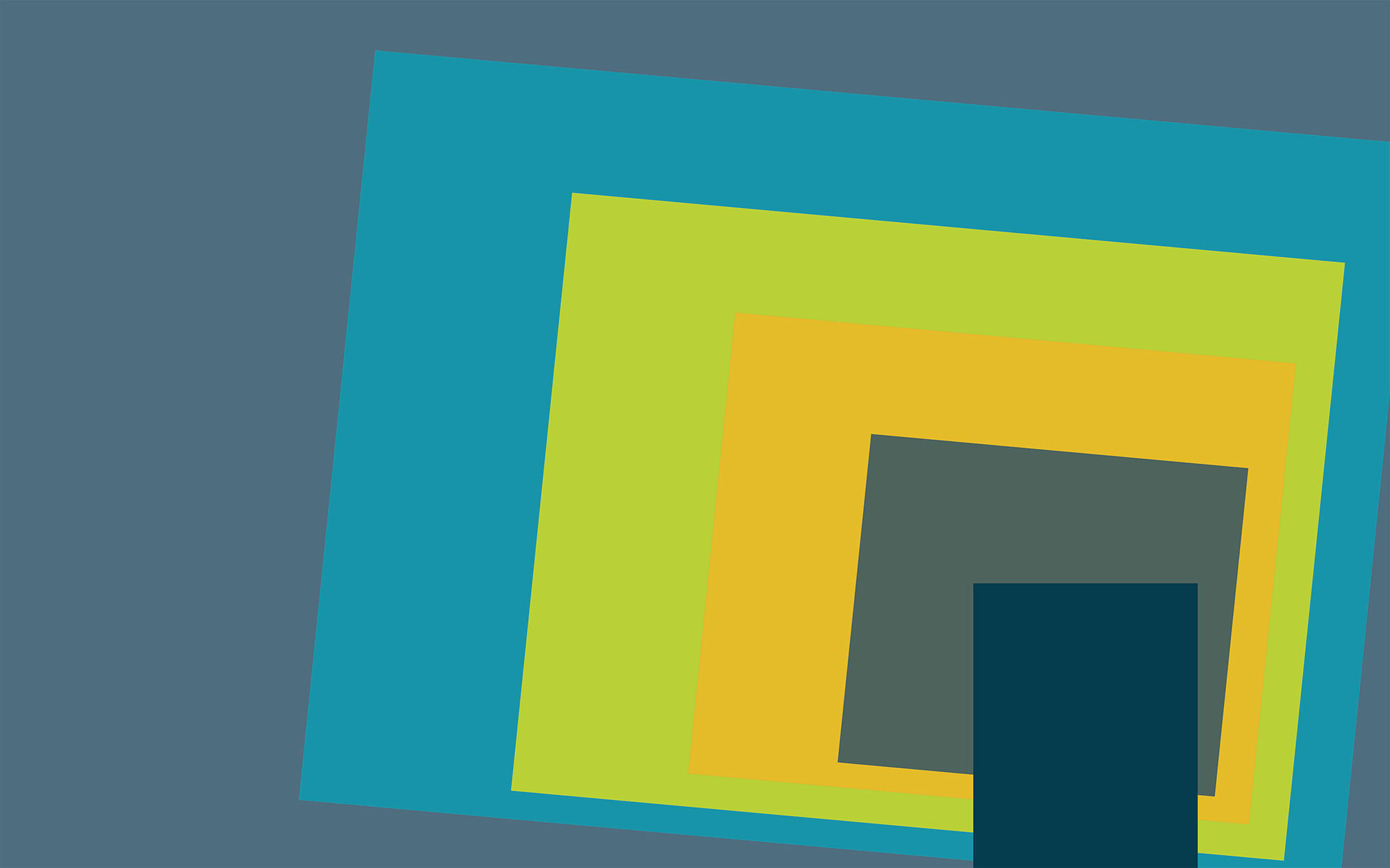 Blocking Blend: Das Rechteck als perfektes Raummedium. Ein senkrecht stehender Zellkern im Vordergrund, gekippte Rechtecke im Hintergrund. Eine ineinandergeschachtelte, geometrische Kettenreaktion.