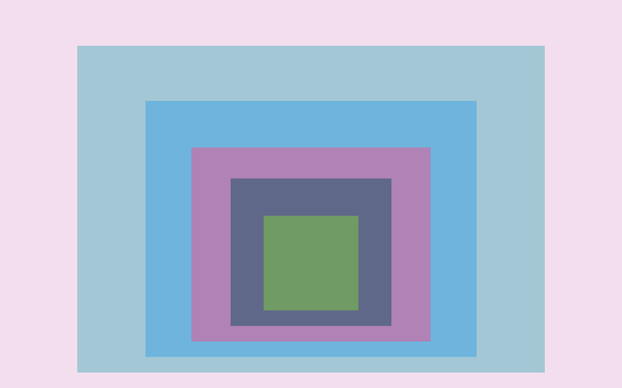 Blocking Straight: Homage an das Rechteck, Homage an Josef Albers. Strenge Geometrie und Interaktion von Farbe. Die Perfektion des Quadrates aufgehoben im Zentrum verschachtelter Rechtecke.