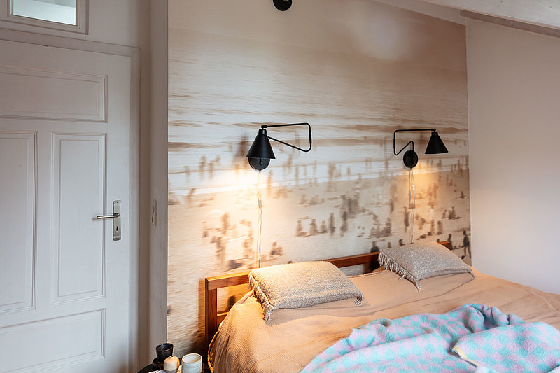 Manuela Hollerbach: Yes, it’s in the bedroom. The motif is a photograph from a warm summer evening on the Atlantic coast in France. You can see lots of people – a boy with his ball, a woman about to go into the water, a family having a picnic. I love this image because there’s so much to discover in it. Everyone in that picture was happy in that moment – and I feel that same joy every morning when I wake up. It reminds me of that special evening, of warmth, light, and ease.