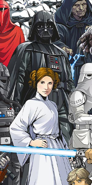 Quirky illustrations and unusual ensembles of scoundrels and villains perfectly set the scene in the rooms of Star Wars fans. They can choose between small statement designs, for example, for above the bed, or XXL photomurals for an entire wall.