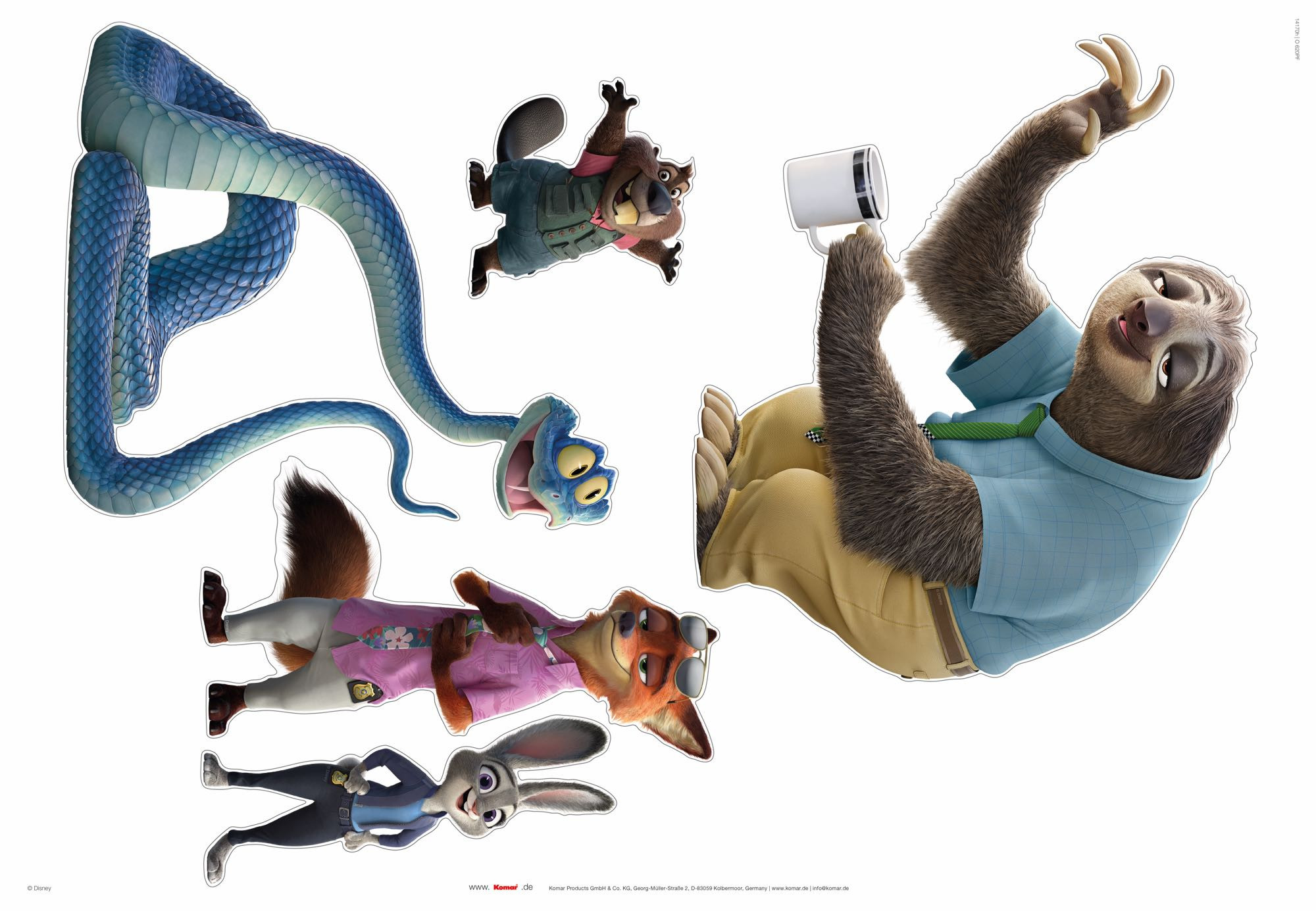 This lovingly designed sticker set brings the animal stars from Disney’s Zootopia right to your home. Included are the ambitious police officer Judy Hopps, the clever fox Nick Wilde, the easygoing sloth Flash, and the seemingly innocent Bellwether. A cheerful snake and a lively rodent add even more fun. Perfect for decorating, collecting, or gifting to all fans of the colorful animal city!