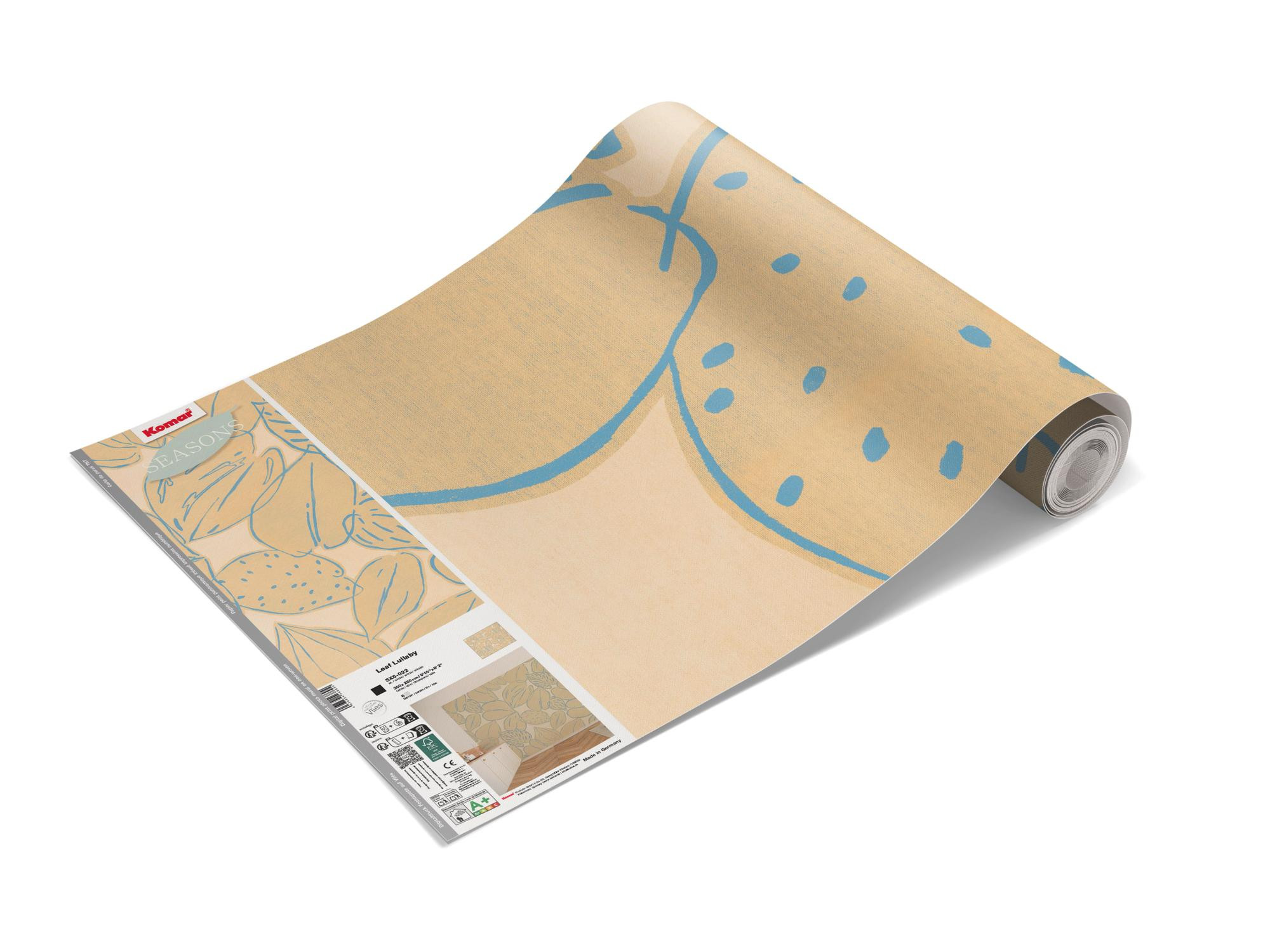 Esta ilustración desenfadada muestra una variedad de hojas en estilo gráfico, dispuestas de tal manera que el fondo beige parece fundirse con el mar de formas. Los suaves tonos de beige arena y ecru predominan, mientras que las finas líneas en azul claro aportan un contraste sutil. Un papel pintado que da carácter a los espacios sin imponerse – armonioso, moderno y discreto.