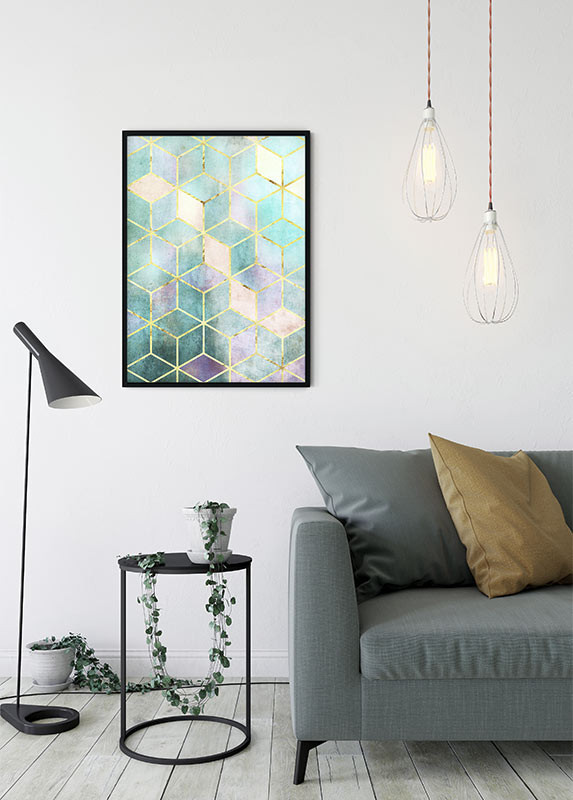 Entdecke die Langsamkeit! Slow Living liegt im Trend. Eine Wanddeko mit geometrischen Formen und in zarten Farben ist Blickfang und Ruhepol zugleich.