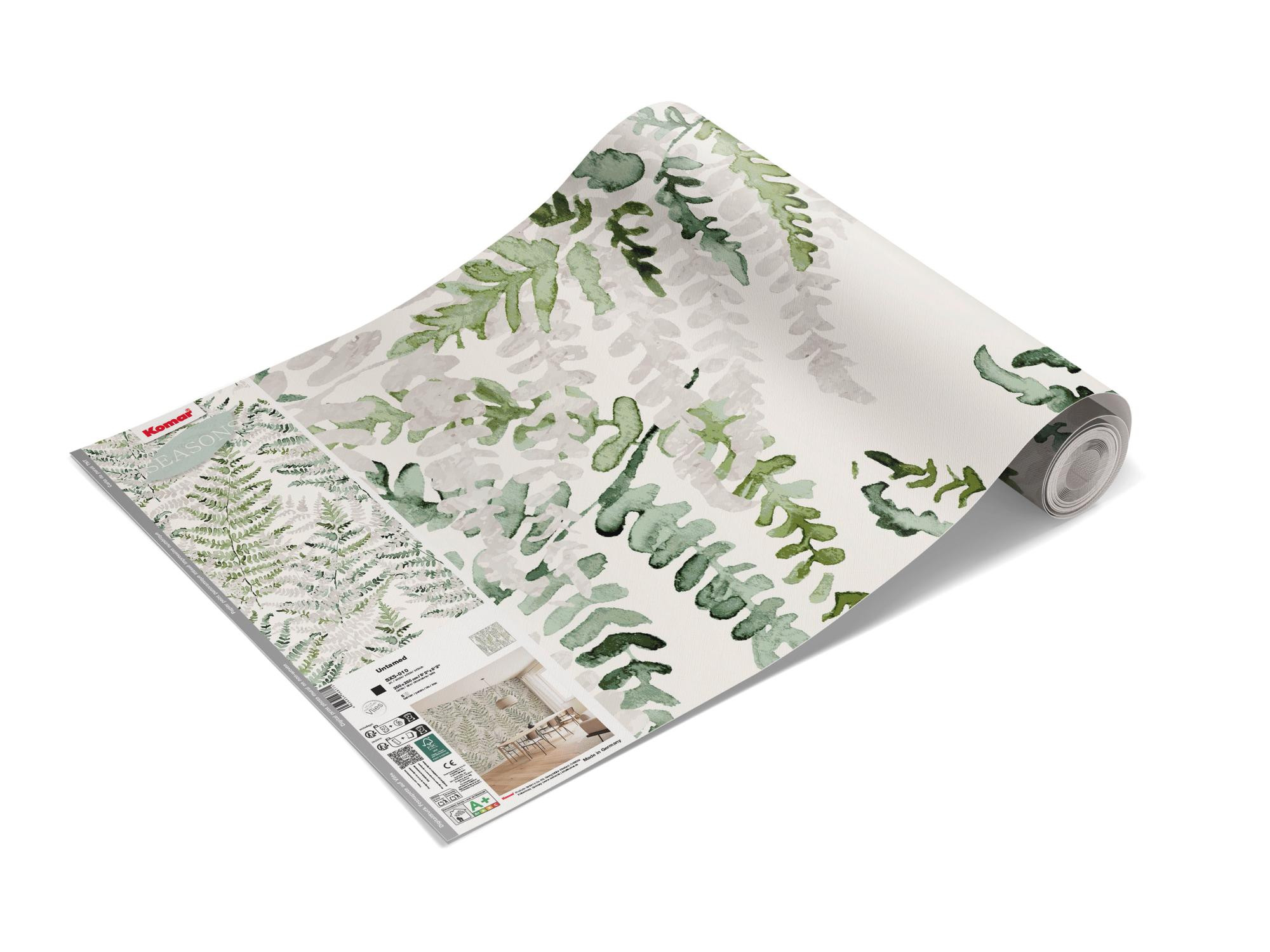 Casi parece que se oye el susurro de las hojas, al menos en la imaginación. El papel pintado no tejido Untamed lleva la ligereza de un bosque verde al interior del hogar. Las delicadas hojas de helecho se extienden por la pared, creando un patrón natural y lleno de vida que evoca un paseo a la sombra del bosque. Los tonos verdes – desde un suave salvia hasta un profundo musgo – contrastan suavemente con el fondo claro y ligeramente texturizado.